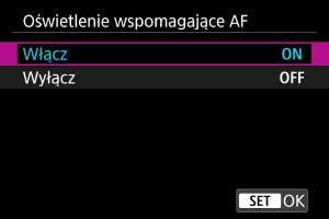 Wyłącza funkcję oświetlenia wspomagającego AF. Ustaw, jeśli nie chcesz, aby oświetlenie wspomagające AF było emitowane.