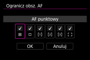Wybierz obszar AF do ograniczenia, a następnie naciśnij przycisk