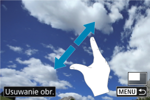Kamera jest wyposażona w panel dotykowy, który umożliwia sterowanie odtwarzaniem. Obsługiwane gesty przypominają te spotykane w smartfonach i podobnych urządzeniach. W pierwszej kolejności naciśnij przycisk , aby przygotować funkcję odtwarzania dotykiem.