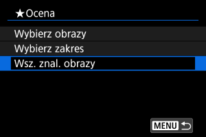 - W przypadku wybrania opcji [Wsz. znal. obrazy] wszystkie obrazy przefiltrowane według kryteriów zostaną ocenione wybraną oceną.