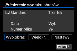 Wybór opcji [Kasuj cały wybór na karcie] spowoduje anulowanie polecenia wydruku wszystkich obrazów na karcie.