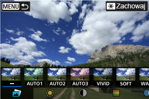 , możliwe jest wybranie [VIVID], [SOFT] lub innych zaprogramowanych ustawień efektów. [AUTO1], [AUTO2] i [AUTO3] to efekty zalecane przez kamerę na podstawie warunków, w których rejestrowany jest obraz.
