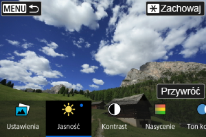 - Możesz wybrać takie efekty, jak [Jasność] lub [Kontrast], naciskając