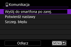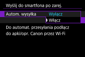 Można automatycznie wysyłać zrobione zdjęcia do smartfona. Przed wykonaniem poniższych czynności upewnij się, że kamera nie jest połączona ze smartfonem przez Wi-Fi.