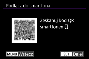 - Jeżeli Camera Connect nie jest zainstalowane, użyj smartfona, aby zeskanować kod QR na ekranie, przejdź do Google Play lub App Store, aby zainstalować Camera Connect, a następnie naciśnij