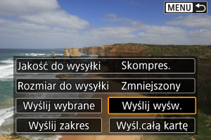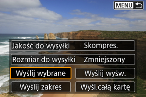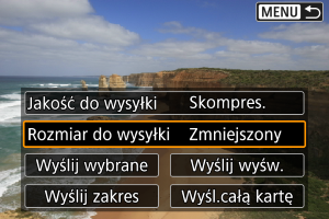 - W przypadku wysyłania wielu obrazów można również zmienić opcję [Rozmiar do wysyłki] na ekranie potwierdzenia przed wysłaniem.