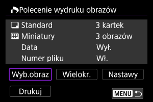 - Sposób konfiguracji drukowania opisano na stronie Polecenie wydruku obrazów (DPOF).