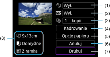 - Przycinany obszar obrazu można sprawdzić w lewym górnym rogu ekranu ustawień drukowania.