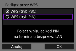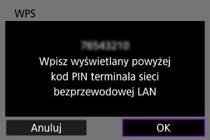 Jest to metoda połączenia dostępna w przypadku używania punktów dostępu zgodnych z funkcją WPS. W trybie łączenia za pomocą kodu PIN (tryb PIN) w celu nawiązania połączenia należy wprowadzić w punkcie dostępu 8-cyfrowy numer identyfikacyjny wskazany na kamerze.