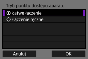 Wybierz opcję [Tryb punktu dostępu aparatu] na ekranie [Wybierz sieć].