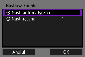 Ustawienia sieciowe dla trybu punktu dostępu kamery są konfigurowane ręcznie. Skonfiguruj [Nazwa sieci (SSID)], [Nastawa kanału] i [Nastawy szyfrowania] na każdym wyświetlanym ekranie.