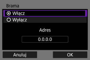- Aby użyć bramy, wybierz opcję [Włącz], a następnie opcję [Adres].