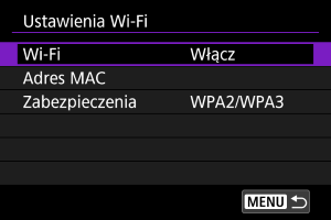Wybierz Zabezpieczenia, które ma być używane podczas łączenia w trybie punktu dostępu kamery.