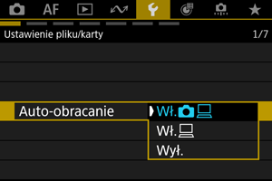 - Obrazy wykonane po wybraniu opcji [Wył.] dla funkcji automatycznego obracania nie zostaną obrócone podczas odtwarzania, nawet jeśli użytkownik wybierze później opcję [Wł.] dla funkcji automatycznego obracania.