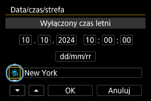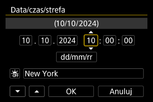 - Po zmianie [Strefa/Różnica czasowa] sprawdź, czy została ustawiona prawidłowa data/czas.