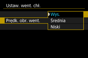 Wentylator pozostaje włączony z prędkością ustawioną w pozycji [Prędk. obr. went.].