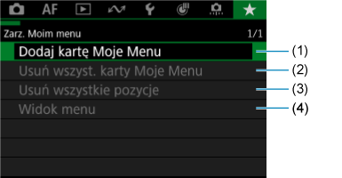 Usuń wszyst. karty Moje Menu