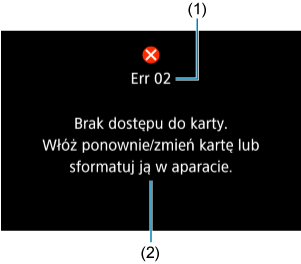 W przypadku wystąpienia problemu związanego z kamerą zostanie wyświetlony komunikat o błędzie. Postępuj zgodnie z instrukcjami wyświetlanymi na ekranie.