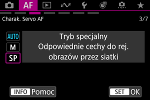 Parametry śledzenia Servo AF można ustawić odpowiednio do warunków fotografowania.