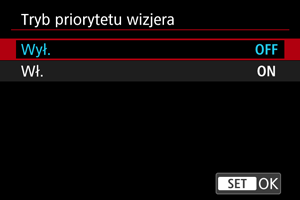 - Gdy ta funkcja jest włączona, fotografowanie jest możliwe tylko przez wizjer.
