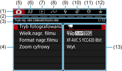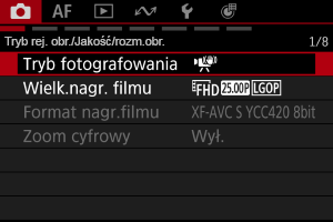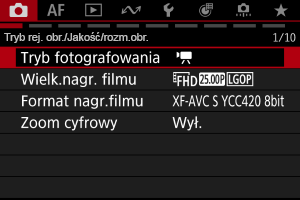 , aby przełączać pomiędzy głównymi kartami (grupy funkcji). Można również przełączać karty za pomocą dźwigni zoomu.