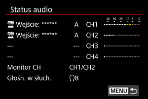 - [Monitor CH] wskazuje ustawione kanały w [Mon. CH rejestr.] dla [Słuchawki] w [