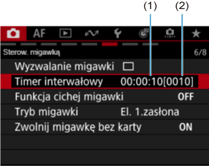 Ustawienia samowyzwalacza interwałowego będą wyświetlane ekranie menu.