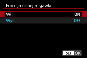 Ogranicza dźwięki zwolnienia migawki, dźwięki towarzyszące wykonaniu operacji oraz wyłącza wyzwalanie i wyświetlanie lampy błyskowej i innych źródeł światła.