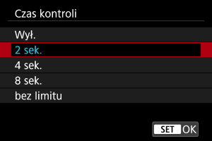 Jeśli obraz ma być wyświetlany po wykonaniu zdjęcia należy wybrać [bez limitu], a jeśli nie ma być wyświetlany, należy wybrać [Wył.].