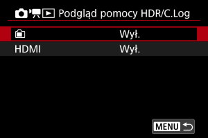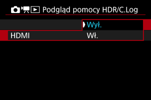 Korzystanie z funkcji podglądu z pomocą na urządzeniach z wyświetlaczem bez obsługi trybu HDR podłączonych przez złącze HDMI.