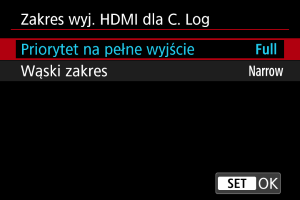 Zakres wyjścia HDMI dla Canon Log