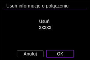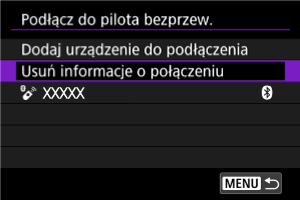 Informacje o połączeniu można usunąć. Informacje o parowaniu dla wszystkich podłączonych BR-E1 zostaną usunięte.