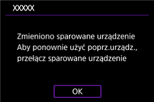 - Jeśli aparat jest już sparowany z innym urządzeniem, wyświetlany jest komunikat. Wybierz [OK], aby zakończyć bieżące połączenie Bluetooth.