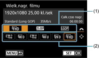 Tak jak w robieniu zdjęć, naciśnij przycisk , aby wyświetlić ekran szybkich nastaw. Każde naciśnięcie przycisku
