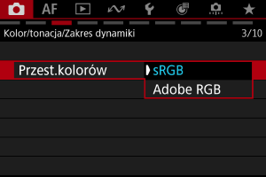 Zakres odwzorowania kolorów jest określany jako przestrzeń kolorów. W przypadku normalnych parametrów fotografowania zaleca się wybór przestrzeni kolorów sRGB.