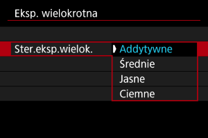 Naciśnięcie przycisku spowoduje wyświetlenie operacji możliwych do wykonania podczas fotografowania z ekspozycją wielokrotną.