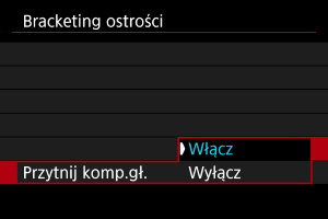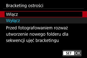: Bracketing ostrości] przełącza się na [Wyłącz] kiedy przełącznik zasilania ustawiony zostaje na