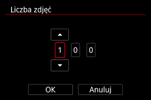 - Ustaw liczbę obrazów wykonanych podczas jednej rejestracji zdjęć.