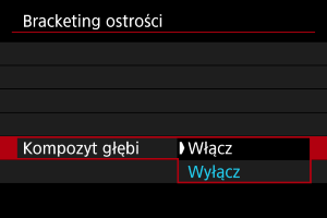 - Wybierz [Wyłącz], jeśli wolisz nie równoważyć zmian w jasności obrazu podczas sekwencji ostrości. Użyj tej opcji do celów innych niż tworzenie głębi zarejestrowanych obrazów w aplikacjach takich jak Digital Photo Professional ().