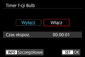 Należy zwrócić uwagę, że timer funkcji Bulb można ustawić i będzie działał tylko w trybie B (ekspozycja w trybie Bulb).