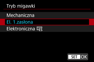 : Funkcja cichej migawki] na [Wł.] ustawia tryb migawki na [Elektroniczna