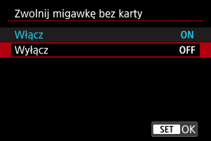 Ustawienie opcji [Wyłącz] pozwala uniknąć robienia zdjęć, jeśli w aparacie nie ma kart.