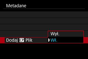 Ustaw pozycję [Dodaj metad.wiad.] na opcję [Wł.].