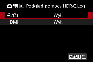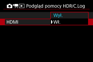 Korzystanie z funkcji podglądu z pomocą na urządzeniach z wyświetlaczem bez obsługi trybu HDR podłączonych przez złącze HDMI.