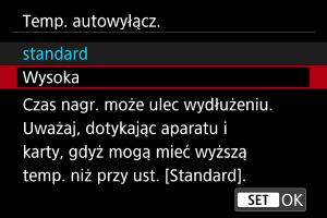 : Temp. autowyłącz.] jest ustawiona na [Wysoka].