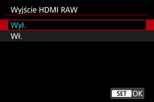 Ustaw na [Wł.] dla filmów w formacie RAW ze złącza HDMI do kompatybilnych urządzeń.