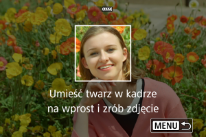 Na wszystkich rejestrowanych twarzach wykrytych na ekranie fotografowania zostanie wyświetlona biała ramka z []. [