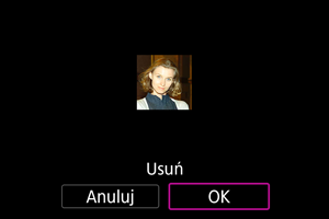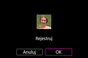 W aparacie można zarejestrować osoby, tak aby aparat próbował wykrywać ich twarze i priorytetowo ustawiał ostrość, jasność i ton koloru dla tych osób podczas fotografowania. Aby zarejestrować twarz, można zrobić komuś zdjęcie lub użyć obrazu zapisanego na karcie.