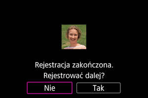 Gdy wyświetlony zostanie poniższy ekran, można zarejestrować twarz kolejnej osoby.