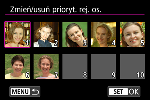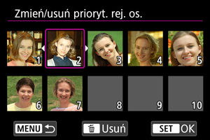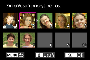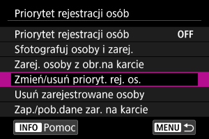 Priorytet wykrywania można zmienić przez inne ustawienie zarejestrowanych osób. Można również usuwać zarejestrowane osoby.